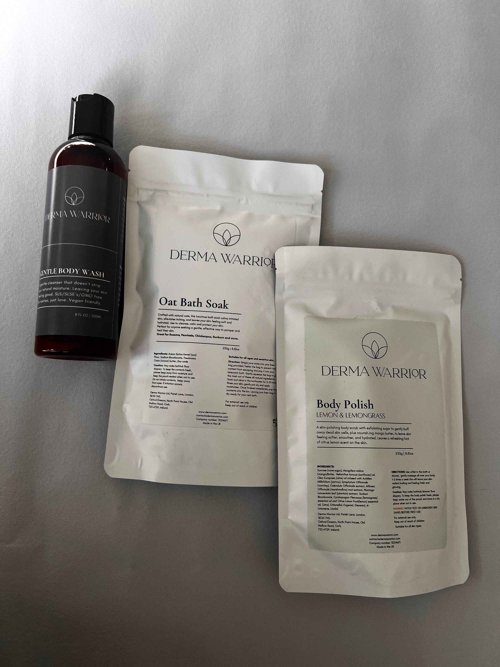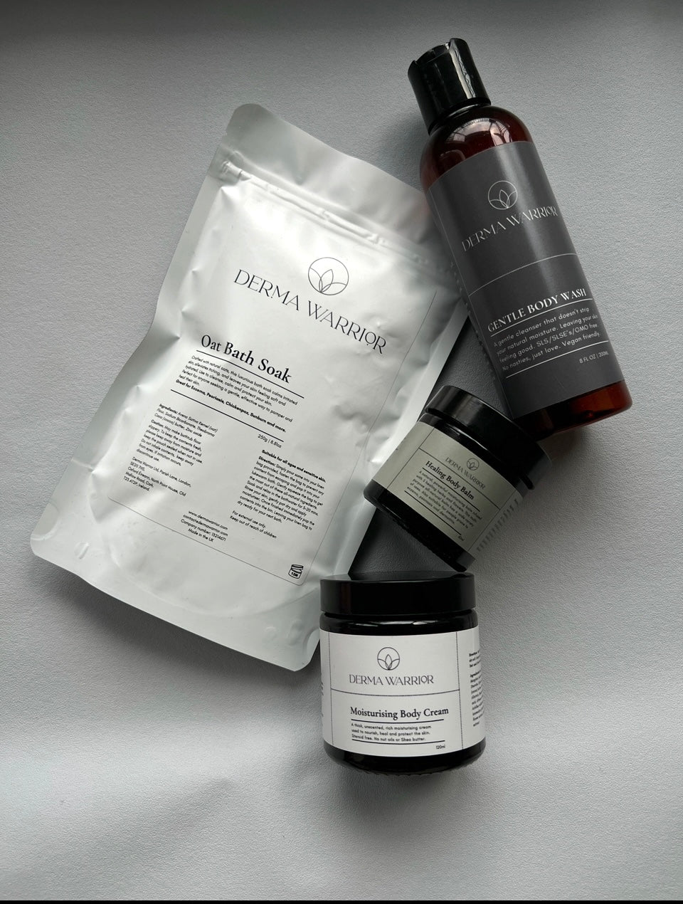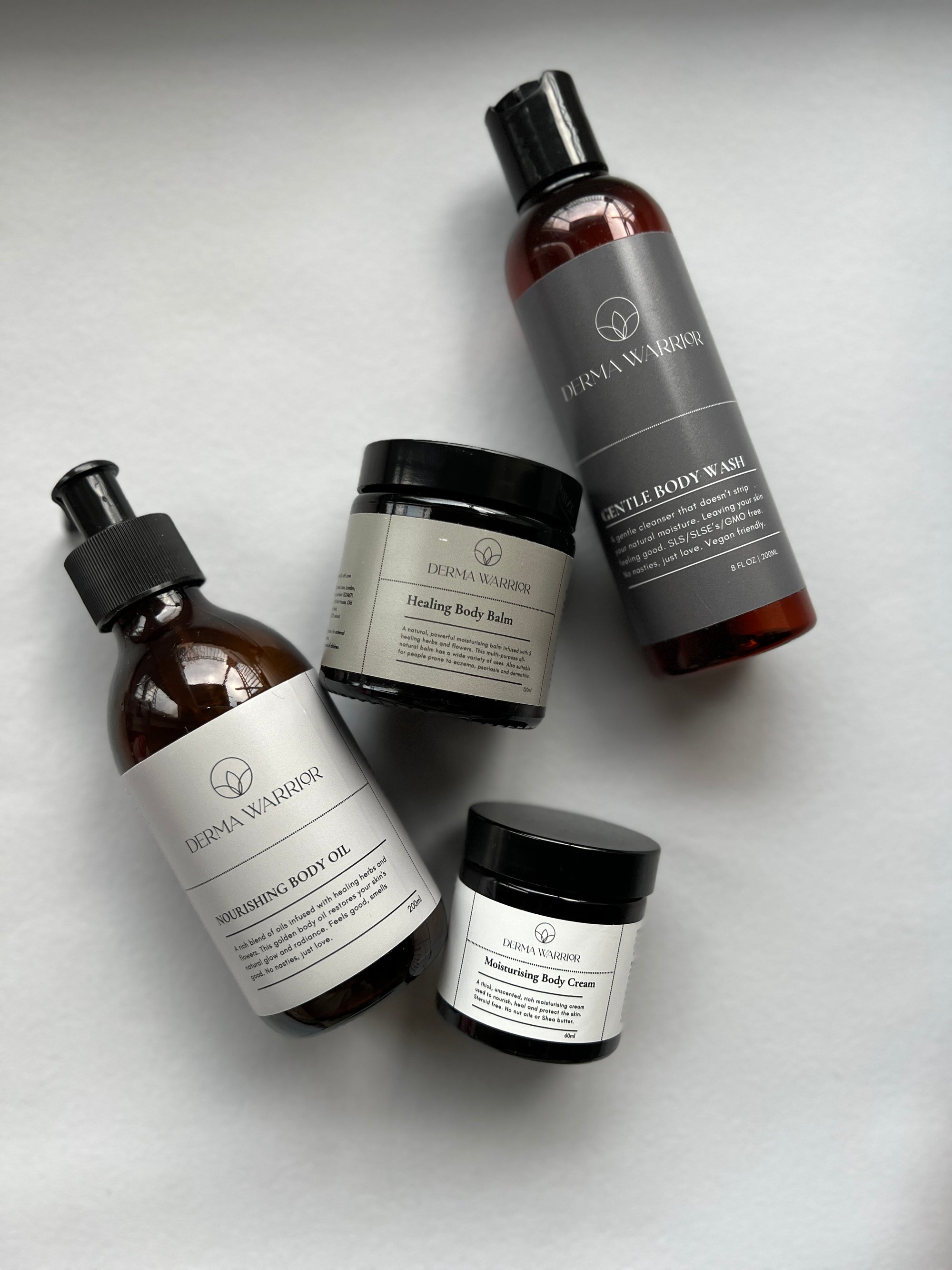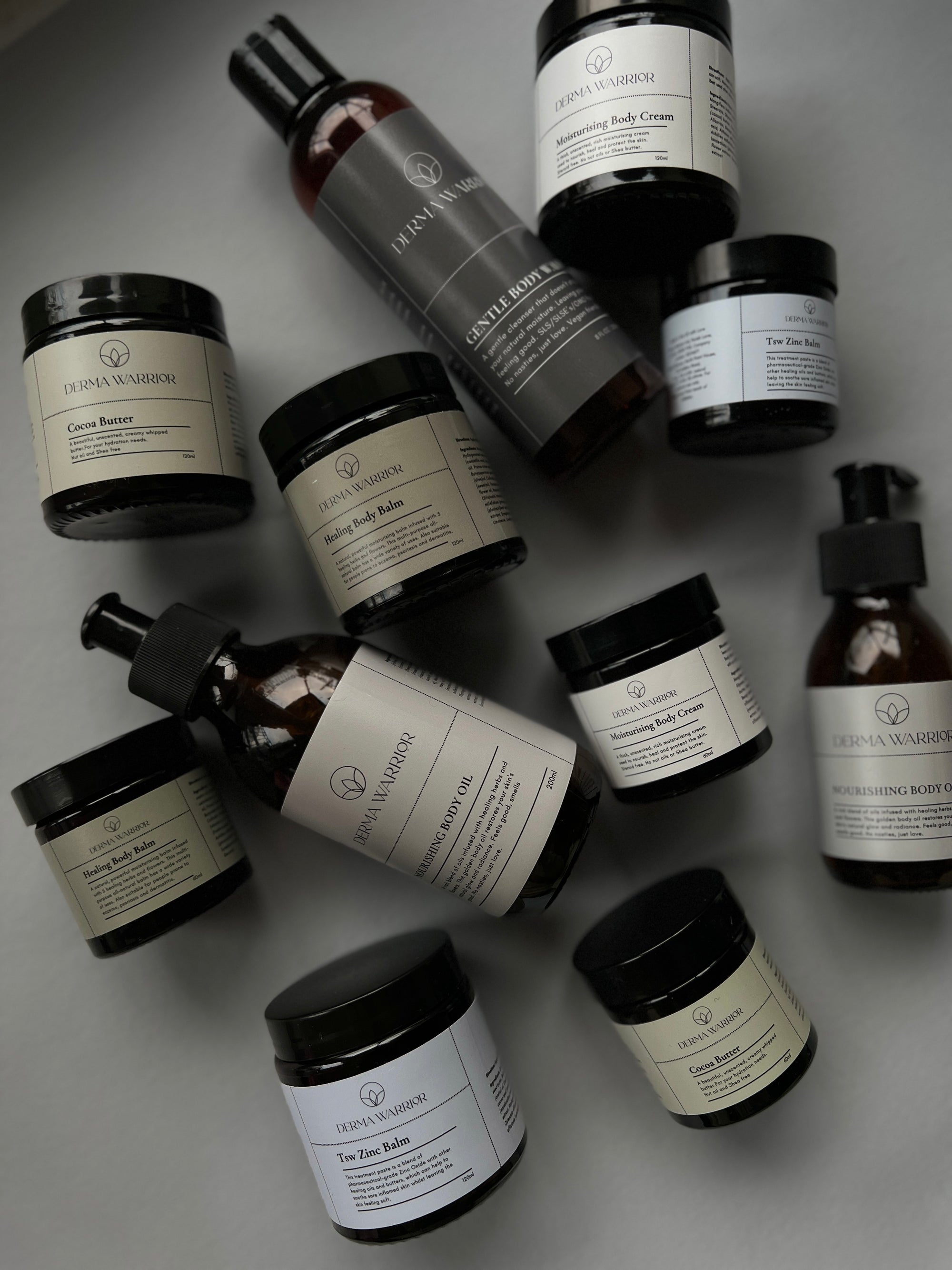 Our range of healing skincare products are inspired by real-life challenges and triumphs. Derma Warrior began in our founder’s kitchen, sparked by her own journey through skin struggles.